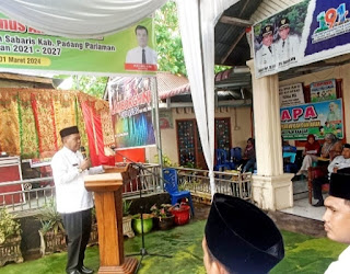 Pauah Kamba, Wakil Bupati Padang Pariaman Rahmang hadiri pelantikan anggota Badan Permsyawaratan (Bamus) Antar Waktu Nagari Pauh Kabar Masa Bakti 2021-2027 di halaman kantor wali nagari Pauh Kambar Kecamatan Nan Sabaris pada Jum'at 1/3/24.